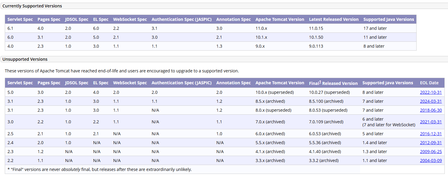 - 버전 5.5 이후는 기본적으로 Java SE 5.0 이후를 대응